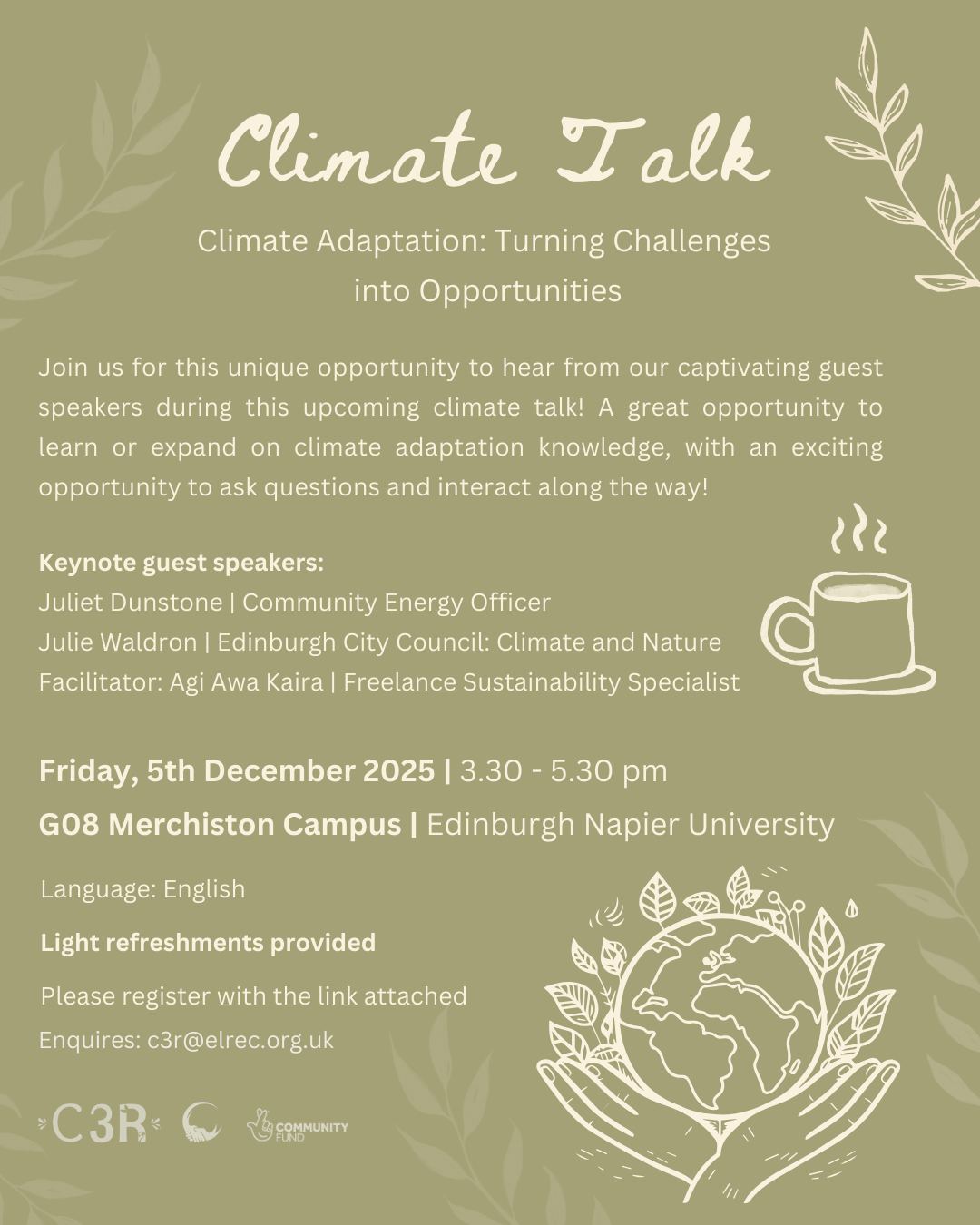 Join us with some warm refreshments for this important talk on climate adaptation and how we can collectively turn climate challenges into opportunities ![]()