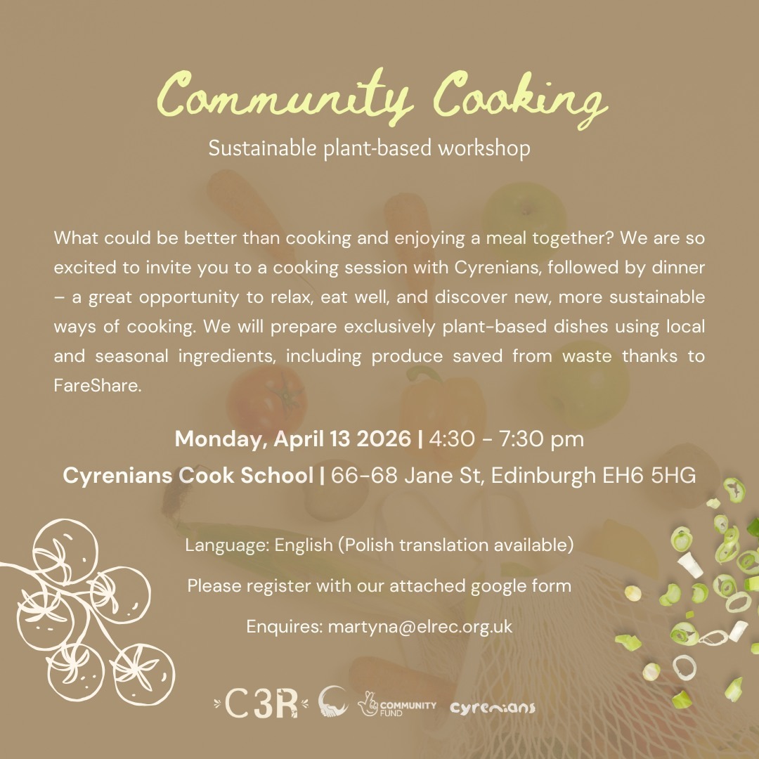 Zapraszamy na wspólną sesję kulinarną z organizacją Cyrenians zakończoną kolacją — to świetna okazja, by się zrelaksować, dobrze zjeść i odkryć nowe, bardziej ekologiczne sposoby gotowania. Będziemy przygotowywać wyłącznie dania roślinne z lokalnych i sezonowych składników, w tym produktów uratowanych przed zmarnowaniem dzięki FareShare