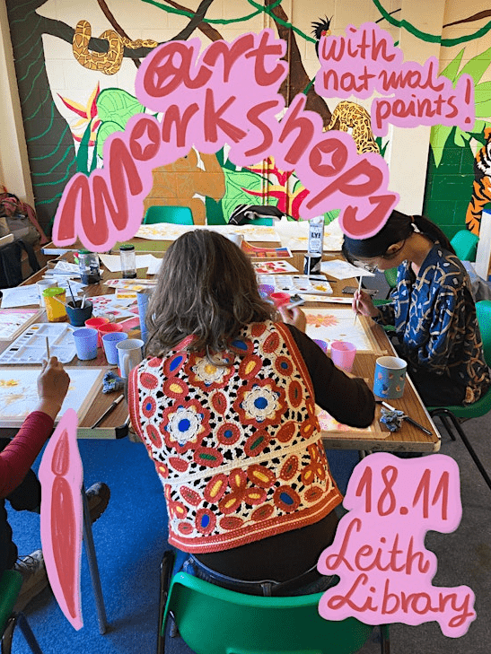 Join us for a free Painting Workshop to paint with natural paints made out of beetroot, turmeric or coffee!