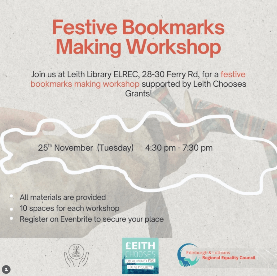 Join us at Leith Library ELREC, 28-30 Ferry Rd, for a festive bookmarks making workshop supported by Leith Chooses Grants!