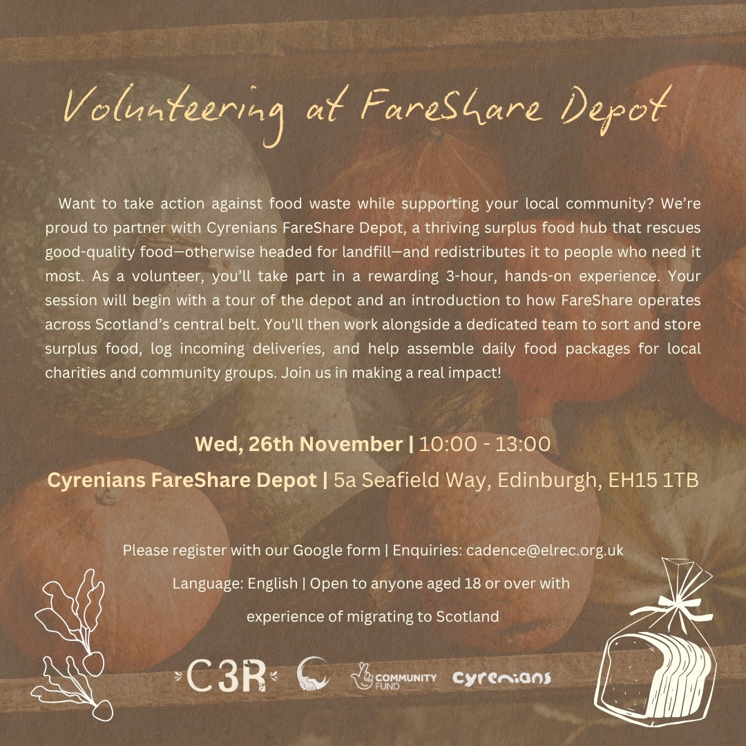We’re proud to partner with Cyrenians FareShare Depot, a thriving surplus food hub that rescues good-quality food—otherwise headed for landfill—and redistributes it to people who need it most. As a volunteer, you’ll take part in a rewarding 3-hour, hands-on experience. Your session will begin with a tour of the depot and an introduction to how FareShare operates across Scotland’s central belt. You’ll then work alongside a dedicated team to sort and store surplus food, log incoming deliveries, and help assemble daily food packages for local charities and community groups. Join us in making a real impact!