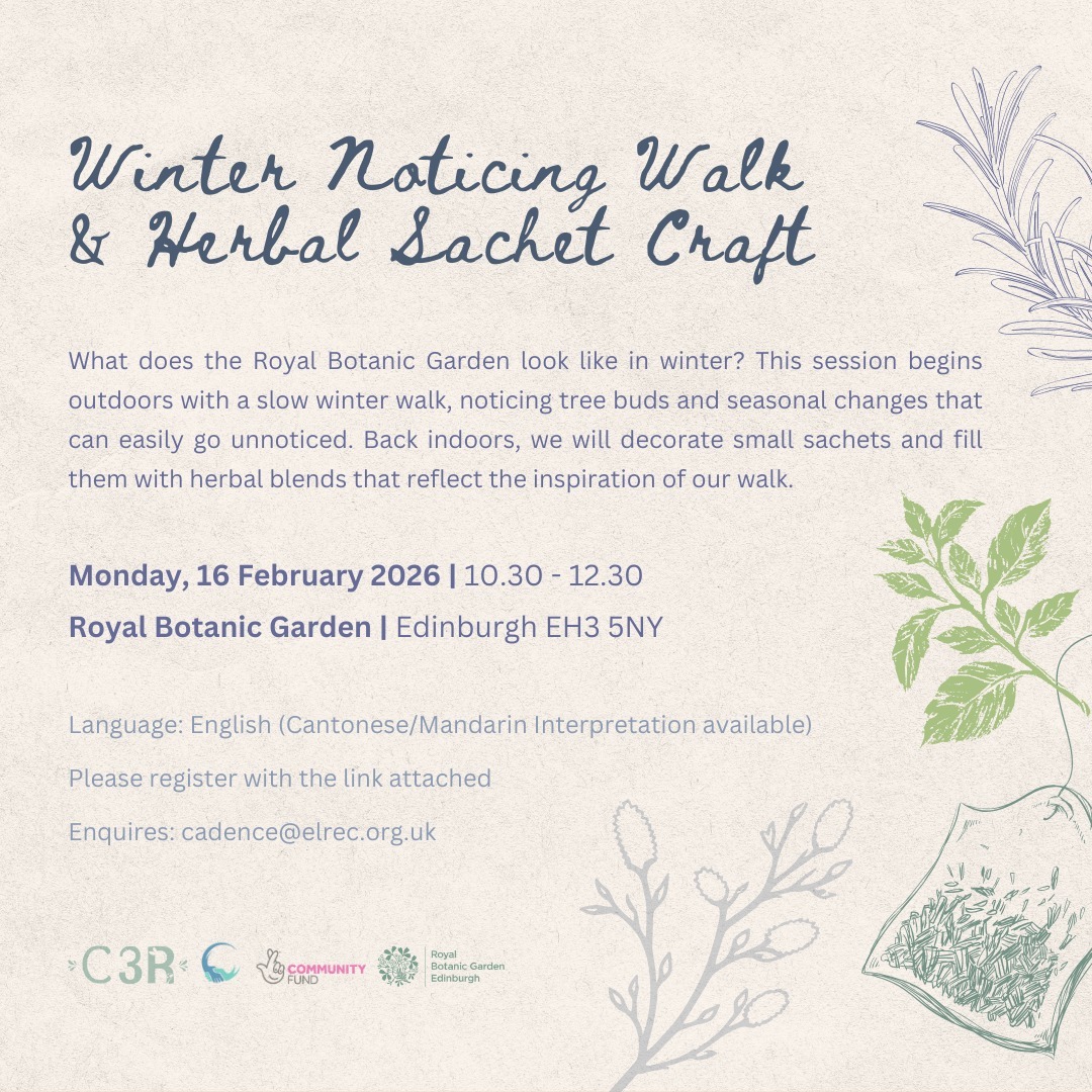 What does the Royal Botanic Garden look like in winter? 🌱❄ This session begins outdoors with a slow winter walk, noticing tree buds and seasonal changes that can easily go unnoticed. Back indoors, we will decorate small sachets and fill them with herbal blends that reflect the inspiration of our walk 🌿