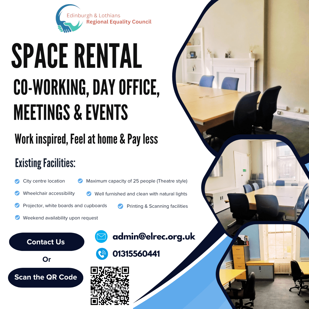 For more information or to book the meeting room, please contact us at 0131 556 0441 or via email at admin@elrec.org.uk. To book please fill this form: https://docs.google.com/forms/d/1ldbU1WpZ66pjd7zUZ2Js7yDZi3-wwiynduJR5BIzkxQ/edit